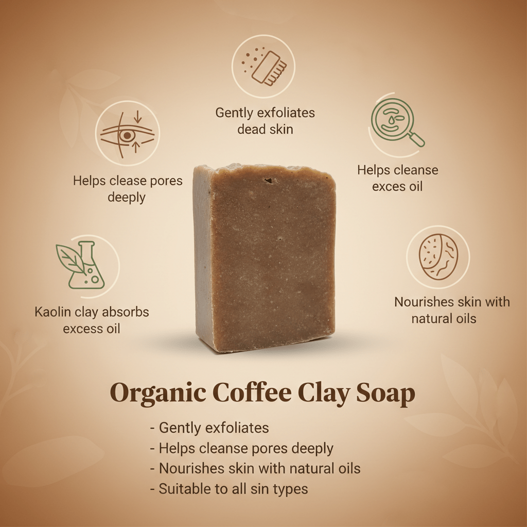 Experience gentle daily cleansing with our handmade Organic Coffee Soap, carefully crafted using natural oils and mineral-rich clay. This soap is designed for those who prefer organic skincare made without harsh chemicals.